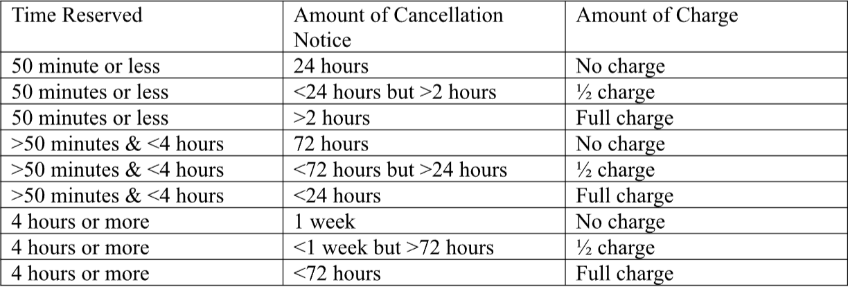 For general clinical services and sex offender treatment, cancellations made within 24 hours of service or not presenting for a scheduled appointment will result in the financially responsible party owing the full cost of the service.